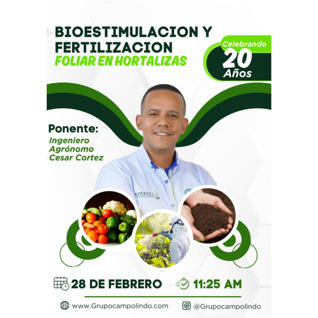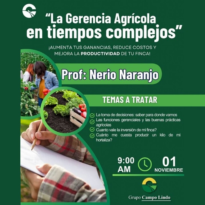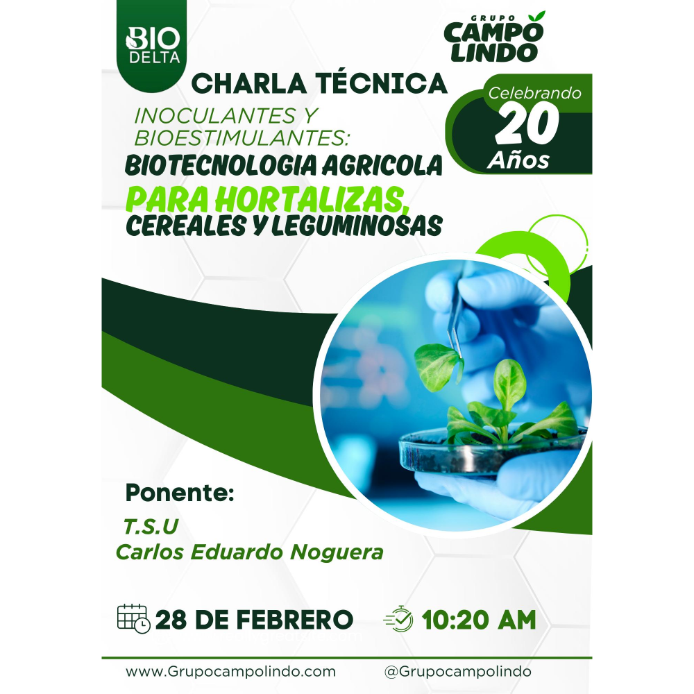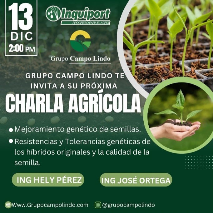 Uso de Insumos Biológicos April 25, 2025 Grupo Campo Lindo y Kruz Agroinsumos tienen el agrado de invitarlos a nuestra importante Charla Técnica: “Uso de Insumos Biológicos: Mitos y Realidades”. Acompáñanos el 25 de Abril a las 9:00 AM para aprender de la mano del Ing. Agrónomo Jeglay Cruz sobre el potencial y las verdades detrás de los insumos biológicos en la agricultura moderna. ¡Una oportunidad invaluable para optimizar tus prácticas y lograr cultivos más saludables y sostenibles!