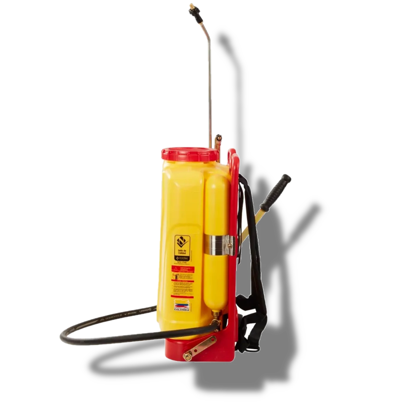 La fumigadora manual RoyalCondor ® La Clásica es la primera fumigadora producida por RoyalCondor ®, preferida por el agricultor, por tradición. calidad, versatilidad, capacidad, duración y excelente costo -beneficio. Es una fumigadora de uso profesional, diseñada para trabajo pesado y en múltiples aplicaciones agropecuarias. Para lograr la presión de trabajo requerida bastará con 10 palancazos por minuto si usa una boquilla de descarga de 600 CC/minuto y 4 palancazos por minuto si usa una boquilla de 250 cc/min. • Lanza: en acero inoxidable. de alta resistencia y más liviana. • Bomba: Tipo pistón en latón con sistema de válvulas completo. • Palanca: para accionar a los dos lados. • Llave: robusta. ergonómica. con tres posiciones de fumigación: continua. intermitente y bloqueo total. • Manguera: de alta resistencia. en caucho reforzado. • Boquillas: viene dos boquillas: una metálica de cono hueco de 1000cc y una en pilimero de cortina de 600cc. • Filtro recipiente: nuevo diseño. cónico. con mayor capacidad filtrante y no genera salpicaduras. • Tanque: 20L. en polietileno de alta densidad con mirilla indicadora de nivel. resistente al impacto y protegido contra la luz ultravioleta • Correas: curvas. separadas. acolchadas y ajustables. con reata de 2mm de espesor mayor comodidad y resistencia para trabajo pesado. • Chasis: tubular 100% plástico. de alta resistencia ergonómico con agarraderas.